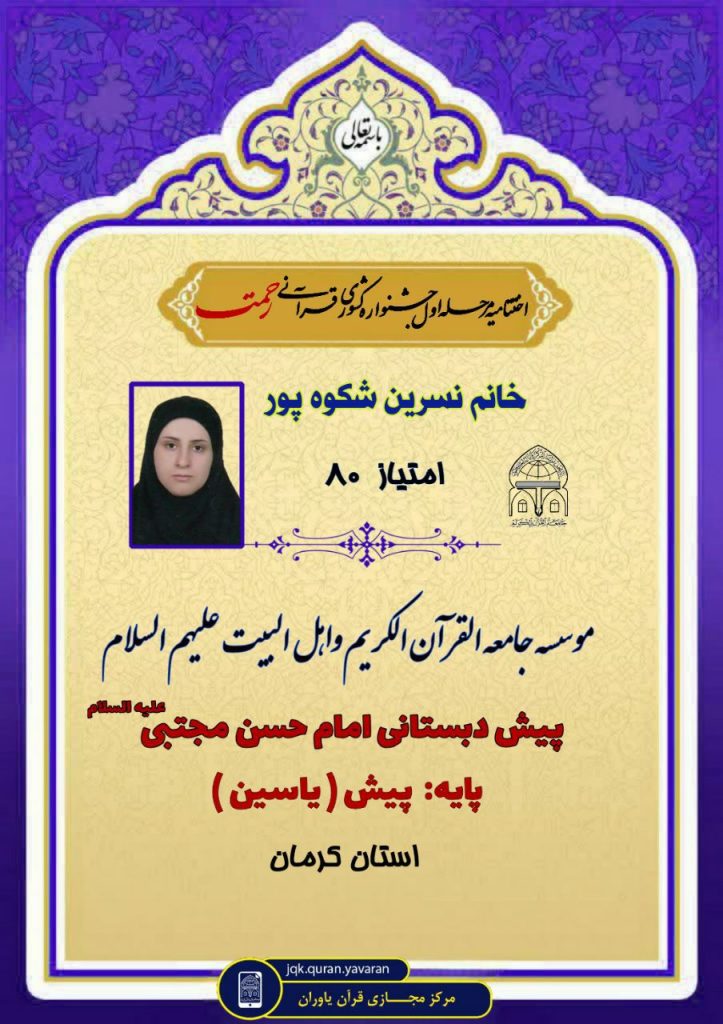 جا دارد از همه مدیران و معاونین پرورشی رابطین قرانی در ستاد مرکزی و همکاران در گروه پر تلاش قران یاوران هم تشکر و تقدیر کنم . امیدوارم در دوره بعدی و قسمت دوم جشنواره شاهد آثاری فاخر از منظر تولید محتوی باشیم.