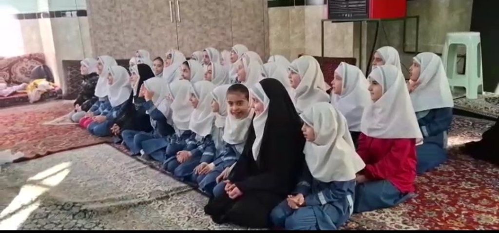 حضور گروهی از دانش آموزان کلاس پنجم در نماز جمعه به همراه معلم پایه و آموزش درس هدیه ها