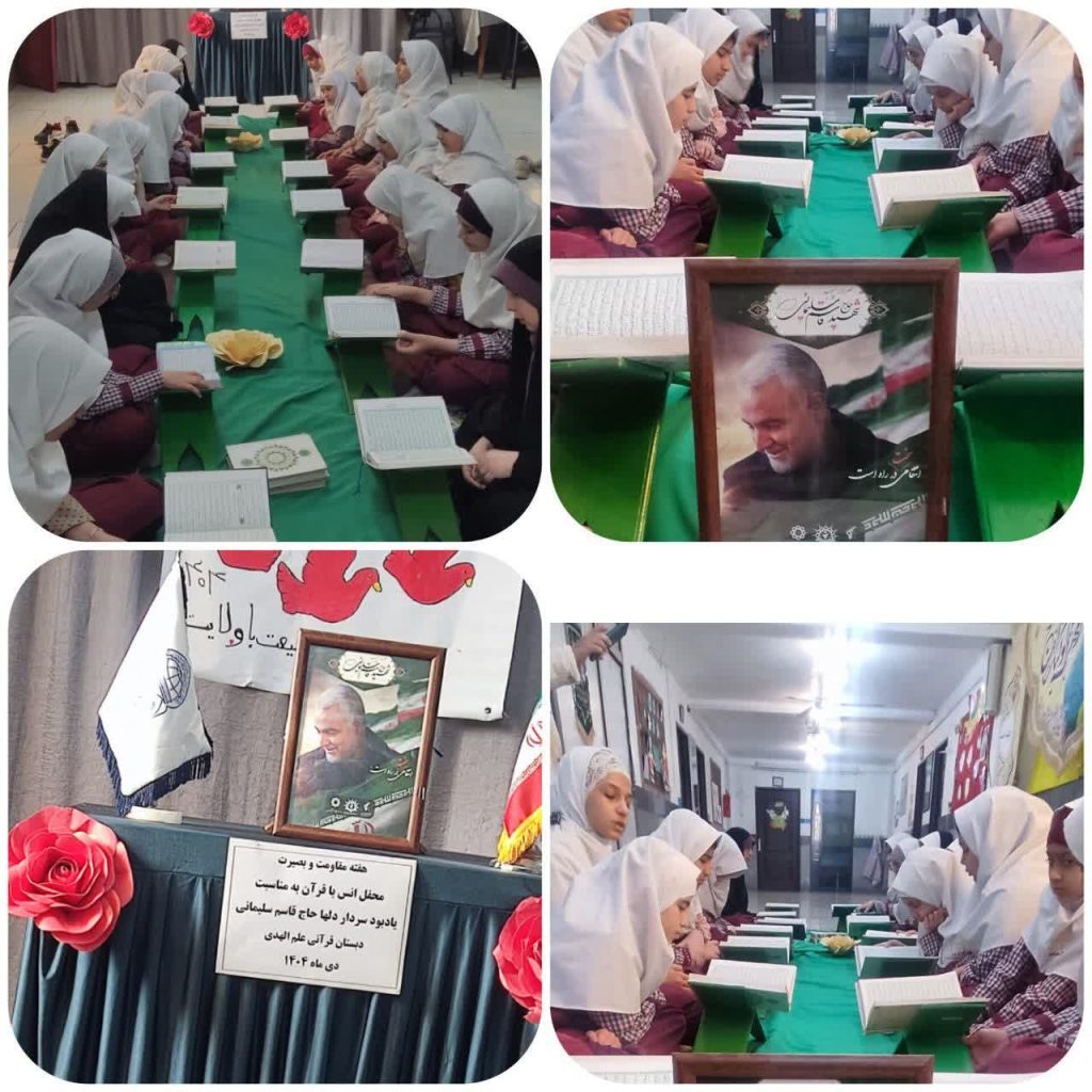 محفل انس با قرآن کریم به یاد شهیدحاج قاسم سلیمانی توسط دانش آموزان وکادر مدرسه
