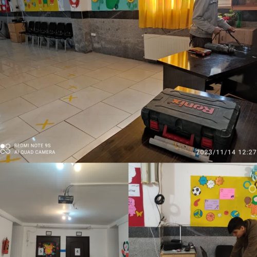 نصب ویدیو پروژکتور در سالن مدرسه جهت استفاده در مراسمها